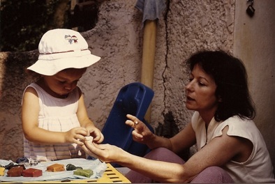Justine Andrieu est ma filleule. Nous voici ensemble quand elle commençait ses recherches artistiques.